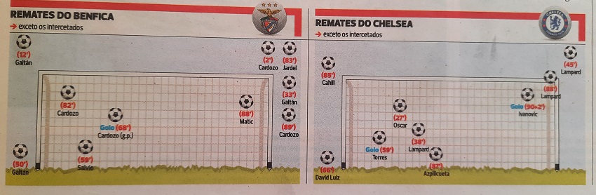 Benfica didn’t deserve to be losing at that stage of the game, and many feared, after defeat at Porto, that they would crack in despair. Yet, they didn’t. Only eight minutes after Torres opened the scoreboard, Azpilicueta stupidly handled in the box, and the local referee, Bjorn Kuipers, pointed to the spot. Cardozo didn’t blink at the chance of levelling the tie. A few minutes later, he had a winner on his boot after an Artur long pass that he blasted towards Chelsea’s goal, only to be prevented by a match-winning save by the Czech goalkeeper. As Lampard hit the post, the match went into one of those moments where anything could happen for any side.
