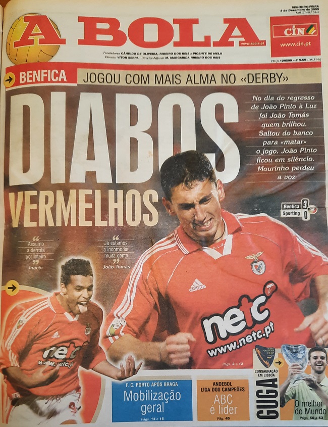 Sporting were left wanting in the back, and João Tomás quickly understood that his time had come. Three minutes after the sending-off, he took advantage of a long pass by Meira and beat César Prates and André Cruz before netting the ball. Mourinho celebrated like a maniac, knees on the ground, as he would minutes later when, once again, Tomás proved to be quicker and deadlier than his markers and scored a third and final goal that settled the score in favour of the Eagles, who ended the night just two points behind Sporting in the league table.