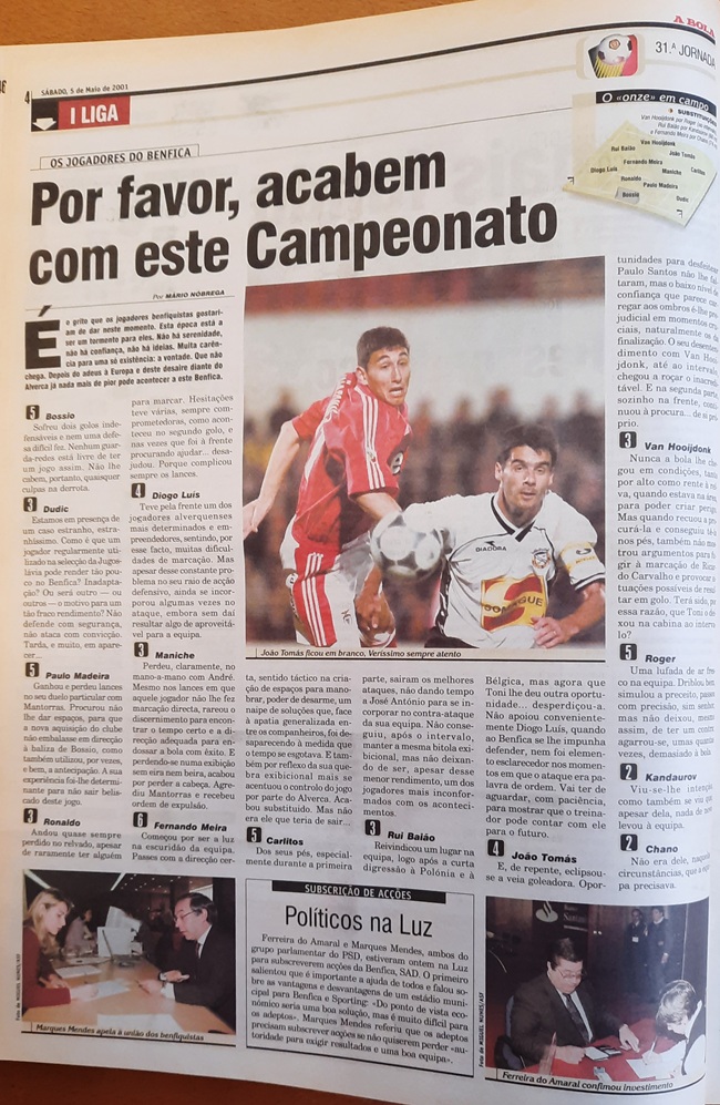 Alverca, coached by Jesualdo Ferreira – he too a former assistant of Toni’s and a well-known Benfica supporter – ran riot that cold December night and won 2-1, with André Macanga and Nikola Milinkovic turning the match around after a brilliant João Tomás opener. Nobody expected that, but afterwards no Benfica fans believed the team was in a position to salvage the rest of the season. Supporters took to heart the idea that the second half of the campaign was just a long pre-season and that they would return stronger in the upcoming summer, with Toni already exerting full power over the squad.