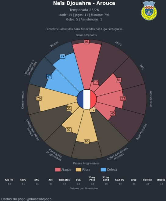 Naïs Djouahra was an excellent business opportunity for Arouca and he is making his mark in our league, with 5 goals and 1 assist in 12 games. Along with Fukui and Lee-Hyun-Ju, he is Arouca’s best hope of turning around their current situation in the Primeira Liga and, in the future, bringing financial returns similar to other players who have recently passed through the club.