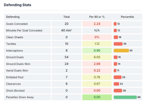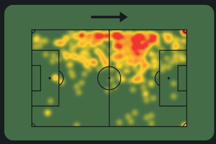 In terms of the defensive side of his game, it is not an area in which he excels. I think he lacks consistency in his actions because, although he is quite competent in 1-on-1 defensive situations (he has good timing when tackling most of the time) and even has moments when, for example, he presses the opponent in the first phase of build-up play, he does not always do so consistently. Also, in the defensive transition phase, there are moments when he gives up on the play, leaving his teammates in a difficult situation.