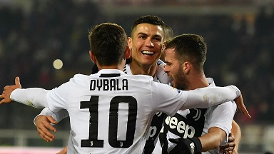 Cristiano Ronaldo has eight goals from his last nine Serie A matches after his penalty won the spoils in the Turin derby on Saturday. Juventus beat Torino 1-0 at the Stadio Olimpico thanks to Ronaldo’s 70th-minute spot kick, with the Portugal captain getting a touch of luck after Torino goalkeeper Salvador Ichazo got a strong hand on the strike but merely parried it inside the post.