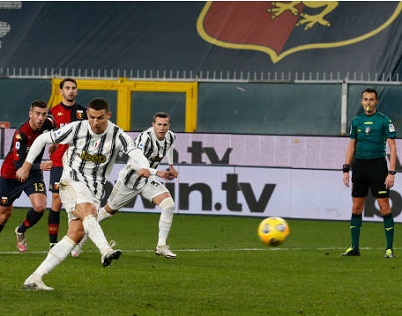 Cristiano Ronaldo made his 100th appearance for Juventus on Sunday and celebrated the occasion with a brace of penalties as the Italian champions beat Genoa in Serie A.