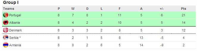 Portugal end qualifying Group I as crushing winners of their section, accumulating 21 points from their eight matches, 7 more than second-placed Albania.