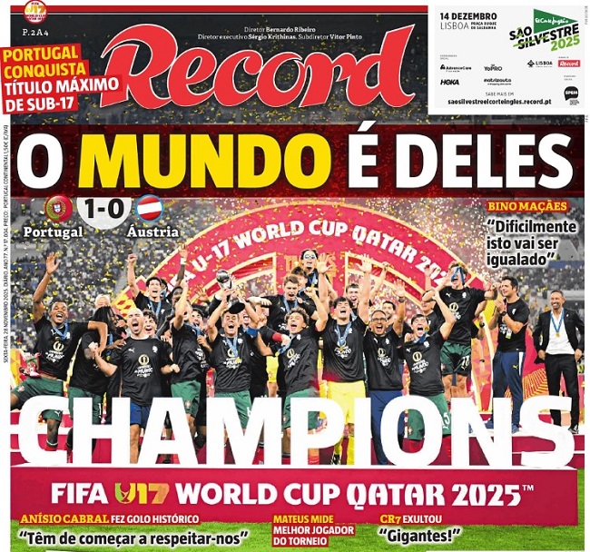 Portuguese football is in celebratory mood after the brilliant conquest of the FIFA U17 World Cup by the Seleção in Qatar yesterday, half a year after the same team won the UEFA U17 European Championship.