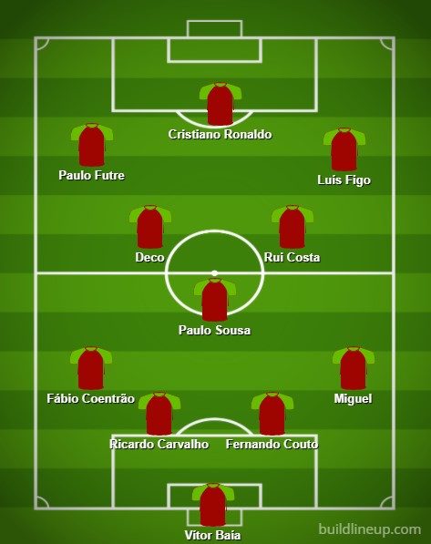 Forwards: Paulo Futre (João Pinto), Luís Figo (João Félix), Cristiano Ronaldo (Nuno Gomes)