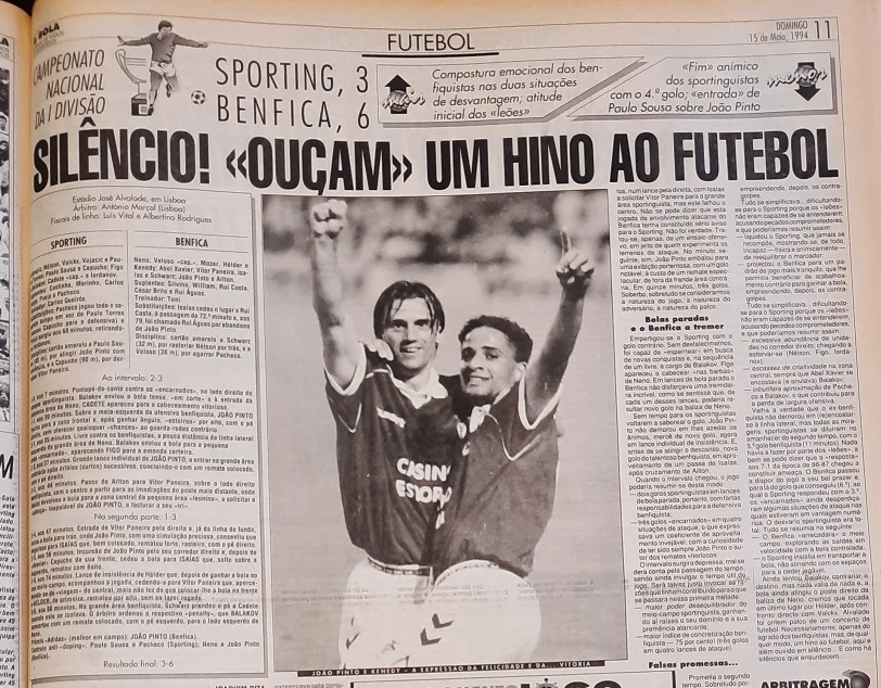 A Bola’s report the next day refers to Sporting’s "SUICIDAL INSTINCT" alluding to Carlos Queiroz’s half-time substitution