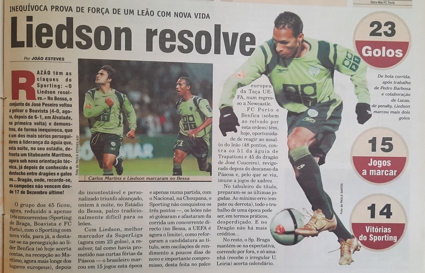 The Leões win at the Bessa ground just about finished off Boavista’s last title run in their history. Even though the Axadrezados bounced back to beat Porto the following week, they didn’t win a single match after that until the end of the campaign. Losses against Beira-Mar, Vitória FC, Académica, Braga and Vitória SC condemned them to miss out on European competition the following season and brought the end to Loureiro’s and Pacheco’s brilliant sporting project. Sporting, on the other hand, were greatly motivated after routing the Axadrezados. They not only reached the UEFA Cup final by beating Newcastle United and AZ Alkmaar but also defeated Beira-Mar, Moreirense, Braga and Vitória SC.