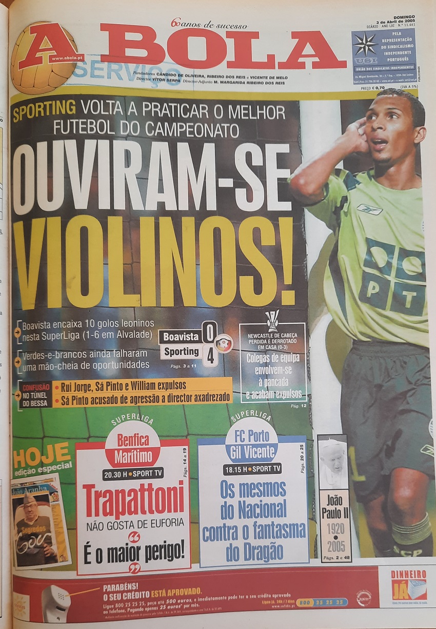 A Bola alludes to Sporting’s great "Cinco Violinos" team in its headline the day after the thrashing of Boavista at the Bessa