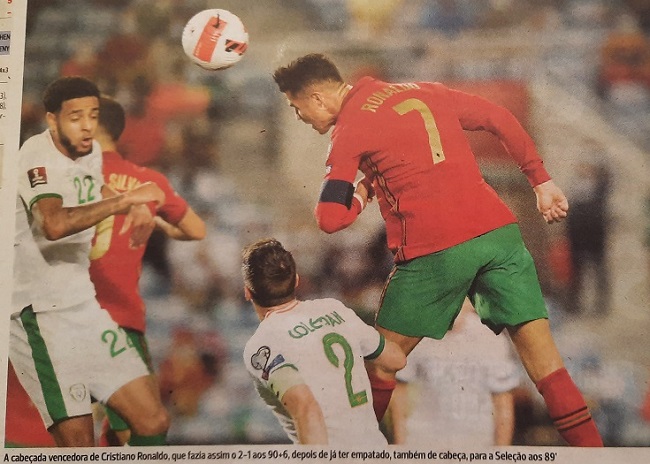 In the final minute of regular time, good wing play by substitute Gonçalo Guedes ended with a pinpoint cross onto the head of the captain, who headed low into the corner of the net to avert a shock defeat and break Irish hearts.