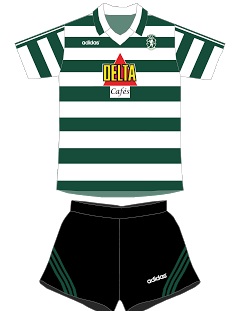 Something few could have expected from a club that came from the rural interior, often depicted as conservative. Never had a sponsor had such a prominent role in a home kit but never a club, in the modern professionalised world of 1990s football, been so dependent on a single money backer. As an alternative kit, Reebok went for a kit that respected the inner colours of the new crest, with yellow and reddish hoops and red shorts with small green references on the sides, a kit that the side used when they faced the likes of Sporting, Rio Ave and Vitória Setúbal – all clubs that play in green – during the 1998/99 league edition.