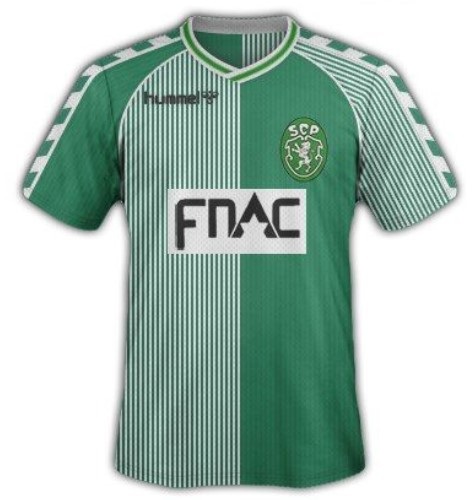 But if using a sponsorship was a novelty, what really stirred the waters was the alternative kit chosen for the season. As usual, Sporting had their Stromp white-green half shirt as their favoured alternative option, but Hummel decided to bring their most famous template to Lisbon instead. The green and white shirt, with very small white pinstripes, gave way to a radical interpretation of the Stromp version, something many veteran supporters took a dislike to it. Younger supporters, instead, mesmerised by those Danish Dynamite shirts, which would become a cult classic over the years, welcomed the novelty, but the kit was rarely used by the first squad during the season, with the club favouring a more popular third choice kit that was all-green, with the Hummel shoulder logo in white.