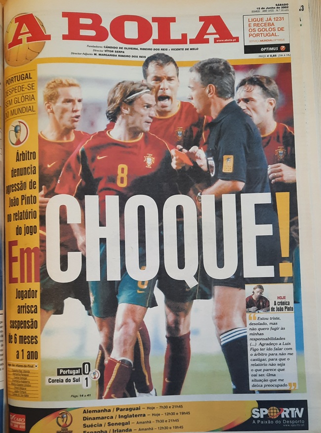 When some South Koreans approached the Portuguese, requesting their opponents to ease up, as a draw would see them both going through, players were told they were being conned, and tension rose. Then João Pinto was sent off, quickly followed by Beto. When both discovered, in the dressing room, that it had all been for nothing and Portugal would have qualified with a draw, it hurt even more. By then, the Koreans had grown tired of the Portuguese violence on the pitch and arrogance of it and pressed for a win they finally got in the dying minutes, thus ending any prospects for Portugal to qualify in second place.