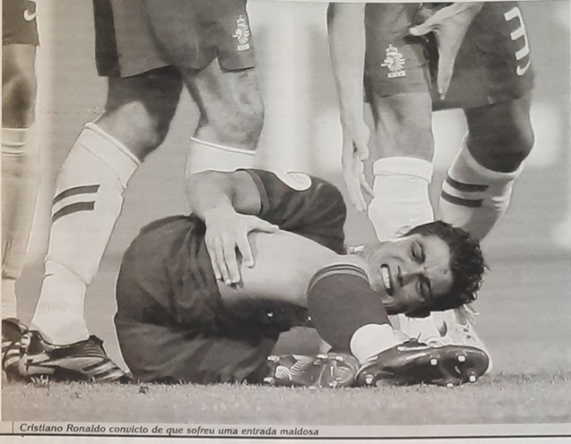 By then, Ronaldo had already been assisted twice after Boulharouz’s criminal tackle, and he eventually couldn’t cope with the pain, and was replaced by Simão before half-time, leaving the pitch in tears. Then came the full-on battle between both sides. Players stopped searching for the opposition’s goal and began to search for their opposite numbers. Costinha was yellow-carded on the half-hour and then again before the break, leaving Portugal playing with ten men. When the match restarted, Ivanov was forced to book Giovanni van Bronkhorst, Wesley Sneijder, Figo and Deco in quick succession.
