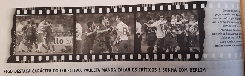 In Portugal, the focus was on the change of mindset Scolari had brought to a side that used to falter when things went rough in the past and now proved they had it in them to survive even in the most dramatic of moments. The match had severe consequences for the following round, though. Cristiano Ronaldo recovered in time, but Deco and Costinha were suspended for the game against England, forcing Scolari to change his midfield again, bringing Petit and Tiago in.