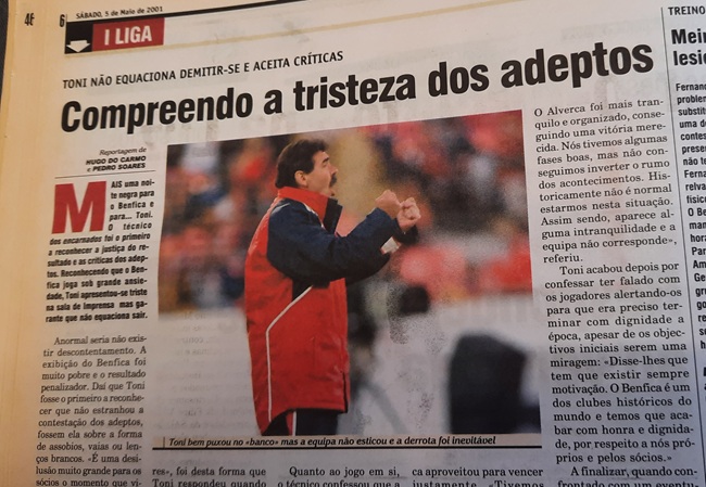 Alverca, coached by Jesualdo Ferreira – he too a former assistant of Toni’s and a well-known Benfica supporter – ran riot that cold December night and won 2-1, with André Macanga and Nikola Milinkovic turning the match around after a brilliant João Tomás opener. Nobody expected that, but afterwards no Benfica fans believed the team was in a position to salvage the rest of the season. Supporters took to heart the idea that the second half of the campaign was just a long pre-season and that they would return stronger in the upcoming summer, with Toni already exerting full power over the squad.