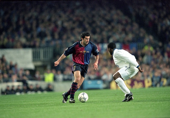 He reunited with Bobby Robson and international teammates Vitor Baía and Fernando Couto for the following season, leading Barcelona to a memorable campaign where they were able to win every competition – the Spanish Supercup, the Copa del Rey and the Cup Winners Cup – bar the league, lost to Real Madrid. Fuelled by Ronaldo Nazario’s goals, this was the first season where Figo showed his true world-class potential, and when the Brazilian was then sold to Inter to be replaced by Rivaldo, his status as one of the leading players of the side remained untouched.