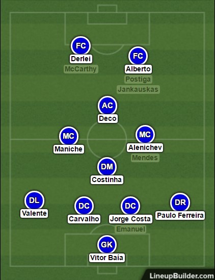 Pedro Mendes was brought in from Vitoria Guimarães, for the UCL season and was often the chosen fourth midfielder. Taking some of the defensive strain off Costinha. Alenichev, more incisive, was always another option when fit and finally Carlos Alberto came in for the second season as a 19-year-old that could play as the more advanced midfielder or behind the main forward and ended up starting in the final versus Monaco.