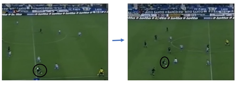 The play of Porto’s fourth goal in what many consider “the match” of the Mourinho era, in which they come back from 1-0 down to beat a fantastic Lazio (Simeone, Chiesa, Stankovic, Mihajlovic) 4-1 at home in the Uefa Cup semi-final.
