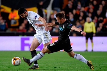 Gonçalo Guedes continues his bid to return to full fitness with his third start since missing two months of the season with an abdominal injury. The former Benfica man started for Valencia in their 2-1 home win over Russians Krasnodar. Fellow Spaniards Sevilla were held to a 2-2 draw at home by Czech side Slavia Prague, with Portuguese duo Daniel Carriço and André Silva unused substitutes for Sevilla.