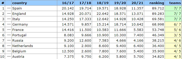 Indeed, with a 6-point differential between Portugal and France wiped out next season as the 2016/17 points are dropped, it is not out of the question that Portugal can make a run at reclaiming 5th position next year.
