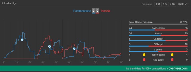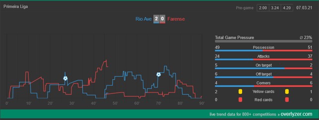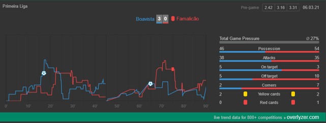 The biggest leap forward in Round 22 was achieved by Boavista, who said goodbye to last place with a 3-0 win over Famalicão. Portimonense also managed to kick free of the drop zone with the 3-0 win over Tondela. We look at how the games of the relegation candidates went and analyse the matches based on the live trends and statistics from overlyzer.com.