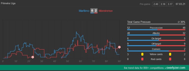 Sitting in the last place is Marítimo, who lost 2-0 at home to an impressive Moreirense. The visitors are probably definitively free from the relegation race and are sitting comfortably in seventh place. In the first half, Marítimo were initially the better team, but Moreirense made it 1-0 through Filipe Soares practically out of nowhere. The hosts were the slightly better team for the entire duration of the game, but could not score, despite a total of 15 shots. In the last minute it was Filipe Soares again who removed all doubts about the winners, making it 2-0.