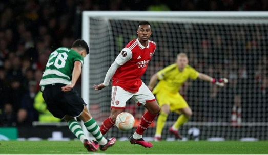 Arsenal were buoyed by the goal Gabriel Jesus and Martinelli causing panicky moments in the Sporting back line, but gradually the visitors again got a foothold in the match. A long clearance by Adán set Marcus Edwards driving towards goal, the Englishman seemingly through but Zinchenko recovered well to intercept his shot.