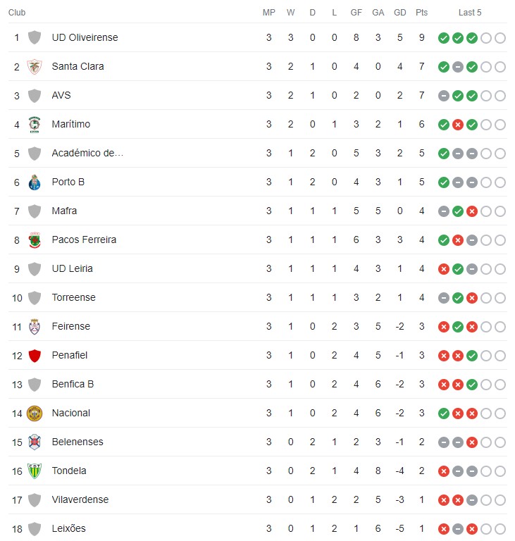 The most impressive side of the season thus far. New owners from Japan came into Oliveirense last season and the Onodera Group have made a number of good decisions for the club, namely the acquisitions of 35-year-old Duarte Duarte and André Schutte signed from the Spanish fourth tier - each can do things with a football that defies physics at times. Certainly a club to watch this season, although it remains to be seen if Oliveirense have the squad depth to keep up a season-long promotion pursuit.
