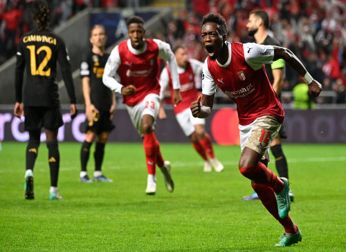Madrid’s celebrations were short-lived with Braga responding to Bellingham’s strike almost instantly with a goal in the 63rd minute. Efficient buildup play down the right side of the pitch ended with Banza providing a perfectly weighted pass for Djaló. The Spaniard opted for power and rocketed a right-footed shot to beat keeper Kepa Arrizabalaga and send the crowd into a frenzy.