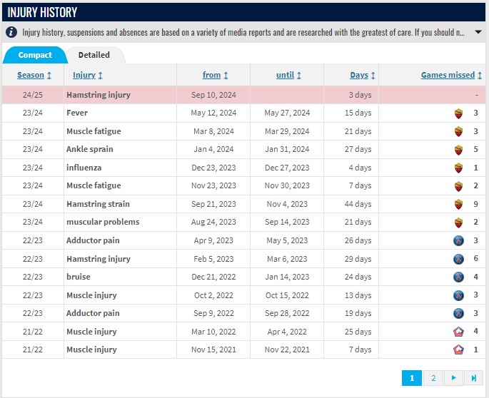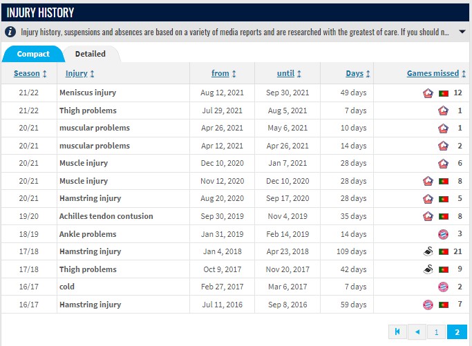 Apart from his debut season and the happy spell at Lille though, Renato Sanches’s constant fitness problems have prevented him from building momentum in a career that promised so much. The injury history tab of the Transfermarkt website makes for grim reading.