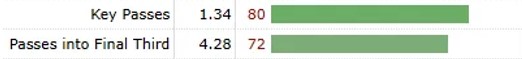 These are impressive numbers for a player in a team that does not focus on possession, where he records relatively few touches – only in the 44th percentile with 51.8 touches per 90 minutes.