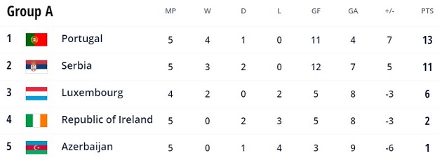 The crunch games for Portugal will be those November matches, with a trip to Ireland before the all-important showdown against Serbia in Lisbon on 14 November.
