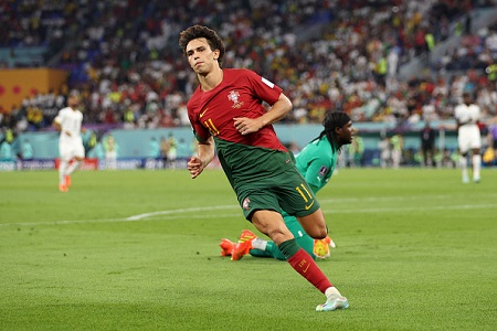 João Félix got into a heated confrontation with Alidu Seidu which saw both players clash heads, the skull to skull confrontation largely instigated by the Portuguese forward. He soon got his revenge however, playing a ball into the box from which Portugal won a penalty.