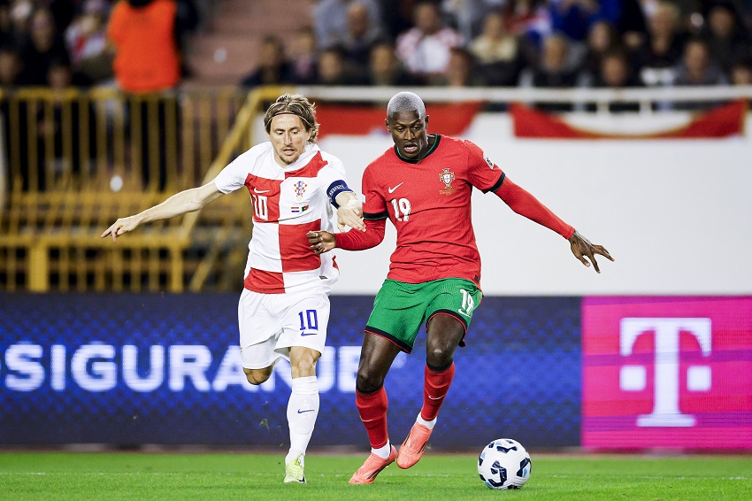Nuno Mendes holds off Croatia captain Luka Modric. Photo: FPF/Diogo Pinto