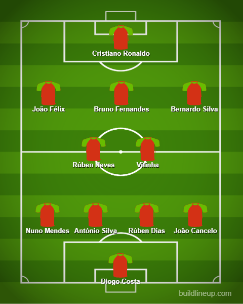 Portugal (4-2-3-1) Diogo Costa; João Cancelo, Rúben Dias, António Silva, Nuno Mendes; Rúben Neves, Vitinha; Bernardo Silva, Bruno Fernandes, João Félix; Cristiano Ronaldo