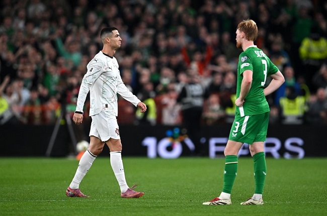 Cristiano Ronaldo was heavily involved at Aviva Stadium but it was the hosts who went ahead in the 17th minute, Liam Scales heading Jack Taylor’s deep corner back into the danger area where Troy Parrott had a simple finish.