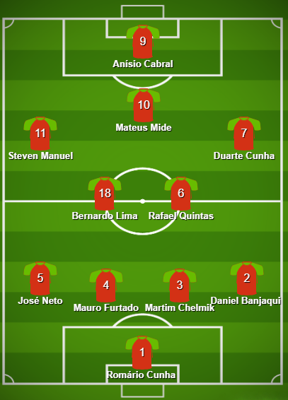 Portugal (4-2-3-1) Romário Cunha; Daniel Banjaqui, Martim Chelmik, Mauro Furtado, José Neto; Rafael Quintas, Bernardo Lima; Duarte Cunha, Mateus Mide, Stevan Manuel; Anísio Cabral