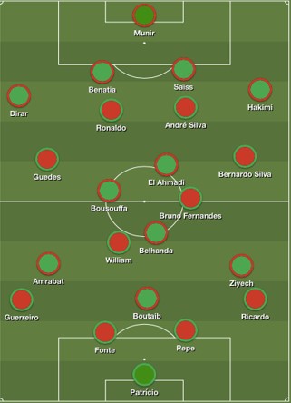 Morocco boast some fantastic players in their ranks and their quality should certainly not be overlooked. But, they aren’t Spain. And so I think a partnership centrally of Bruno Fernandes and William Carvalho would be the best fit for this encounter. Sporting’s magisterial number eight offers a great deal more in an attacking sense than his compatriot, Adrien Silva. Bruno Fernandes boasts a rare well-rounded ability, which enables him to be a goal-threat and creator while maintaining and executing his defensive duties admirably.