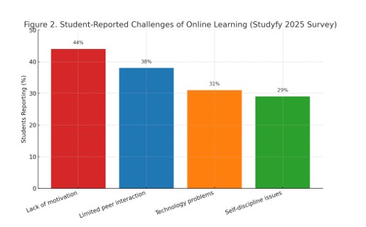 Figure 2. Student-Reported Challenges of Online Learning (Studyfy 2025 Survey):